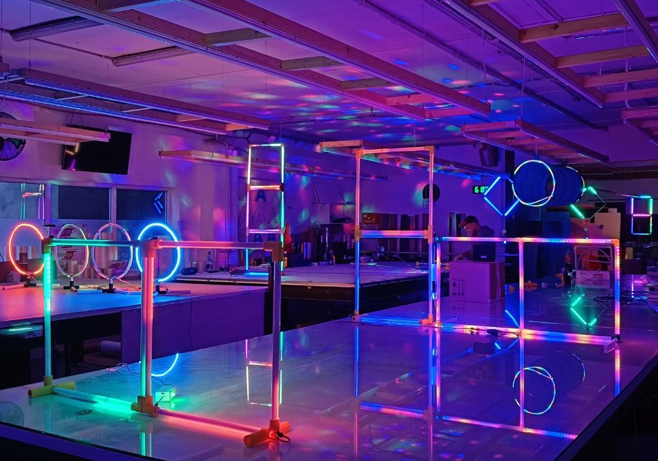Własnymi siłami i środkami stworzyliśmy tor wyścigowy zbudowany z podświetlanych bramek LED. Mamy laptimer do pomiaru czasu okrążeń oraz pozostały sprzęt niezbędny do organizowania treningów i zawodów.