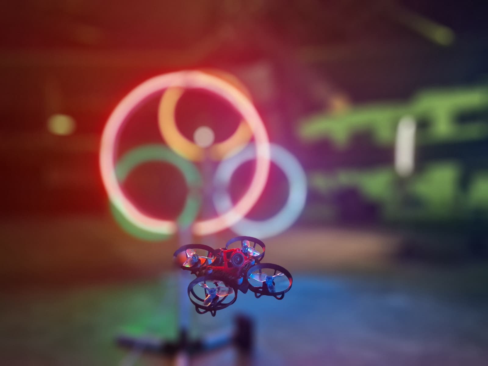 Latamy dronami kategorii Tiny Whoop, czyli maszynkami o wielkości około 10 cm i masie zwykle nieprzekraczającej 20-40 g. Niech nie zwiedzie Cię ich rozmiar. Ciasne tory i lot bez włączonej stabilizacji, w połączeniu z prędkościami do 70 km/h, sprawiają, że mikrodrony cieszą się reputacją najtrudniejszych do opanowania, ale w zamian za to dających najwięcej satysfakcji. Trenujemy przez cały rok indoor (na zadaszonym torze), a nasi piloci regularnie startują w lidze Whoop of Poland